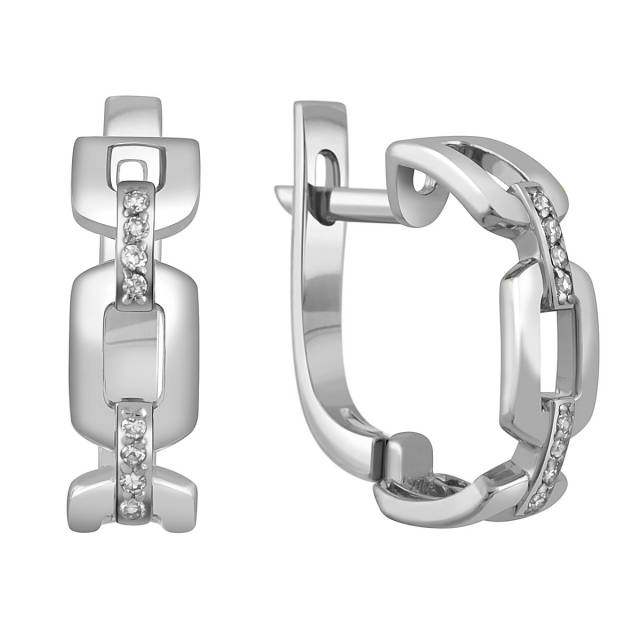 Серьги пусеты из белого золота с бриллиантами "Сердце" (062990)