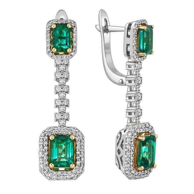 Серьги из белого золота с бриллиантами и изумрудами (051829)