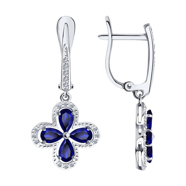 Серьги из белого золота с бриллиантами и сапфирами (043614)