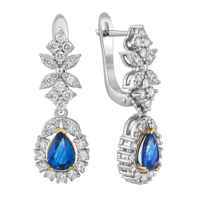 Серьги из белого золота с бриллиантами и сапфирами (045926)