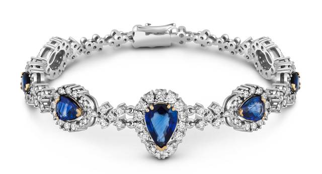 Браслет из белого золота с бриллиантами и сапфирами (045925)