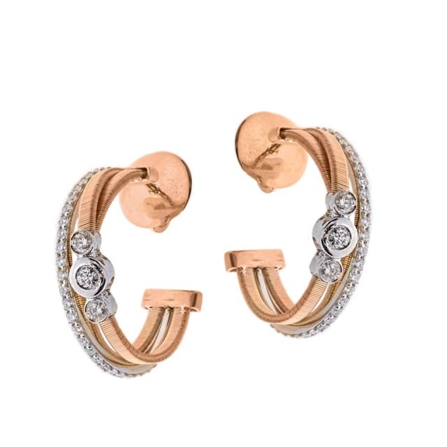 Серьги конго из комбинированного золота с бриллиантами (050720)