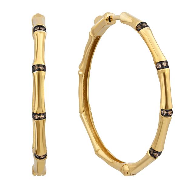 Серьги конго из жёлтого золота с коричневыми бриллиантами (050130)