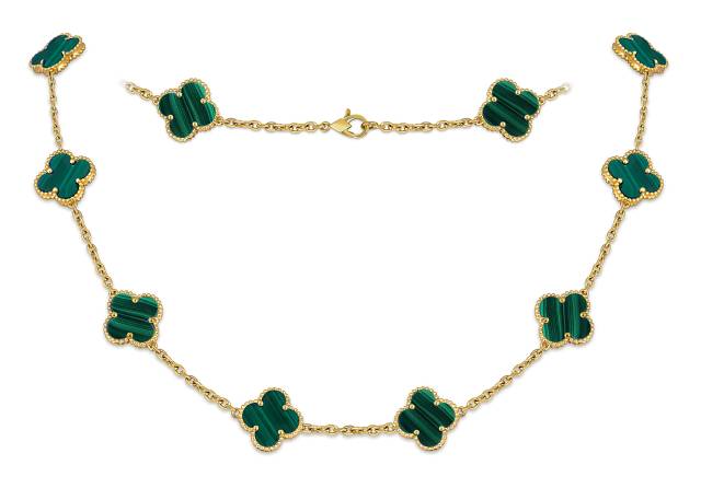 Колье из жёлтого золота с малахитом (052040)