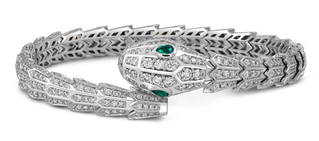Браслет жёсткий из белого золота с бриллиантами и ситаллами (054452)