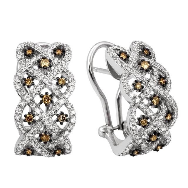 Cерьги из белого золота с белыми и коньячными бриллиантами (003007)