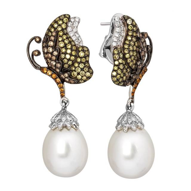 Эксклюзивные серьги из белого золота с бриллиантами, сапфирами и жемчугом (003229)