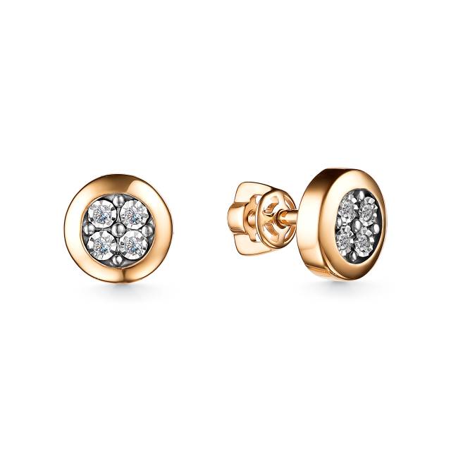 Серьги пусеты из красного золота с бриллиантами (049604)