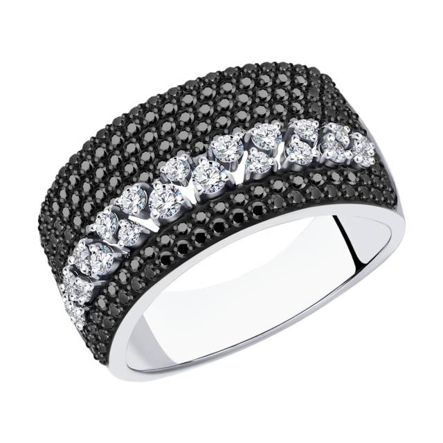 Кольцо из белого золота с бриллиантами и сапфирами (019342)