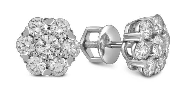 Серьги пусеты из белого золота с бриллиантами (054335)