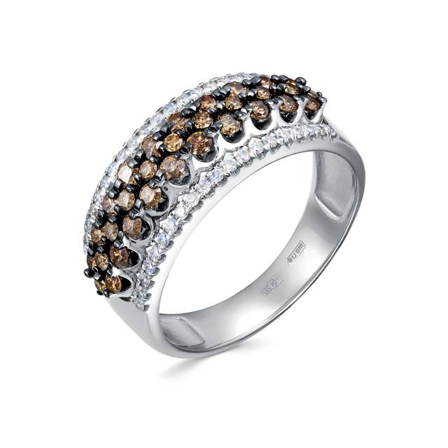 Кольцо из белого золота с бриллиантами и сапфирами (028355)