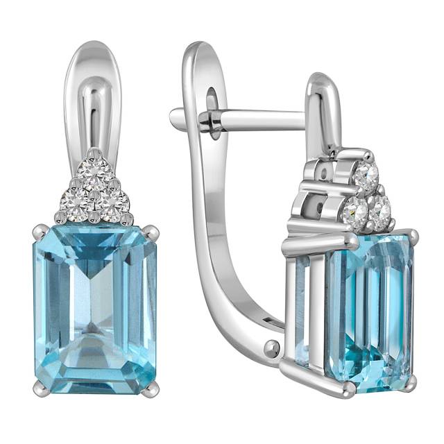 Серьги из белого золота с бриллиантами и аквамаринами (052055)
