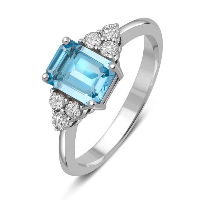 Кольцо из белого золота с бриллиантами и аквамарином (052054)