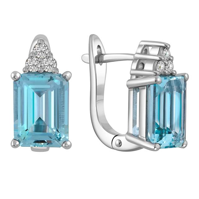 Серьги из белого золота с бриллиантами и аквамаринами (052564)