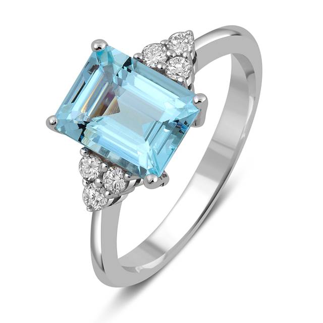 Кольцо из белого золота с бриллиантами и аквамарином (052567)