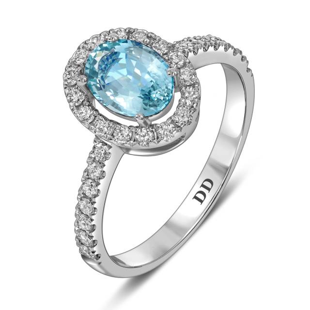 Кольцо из белого золота с бриллиантами и аквамарином (062767)