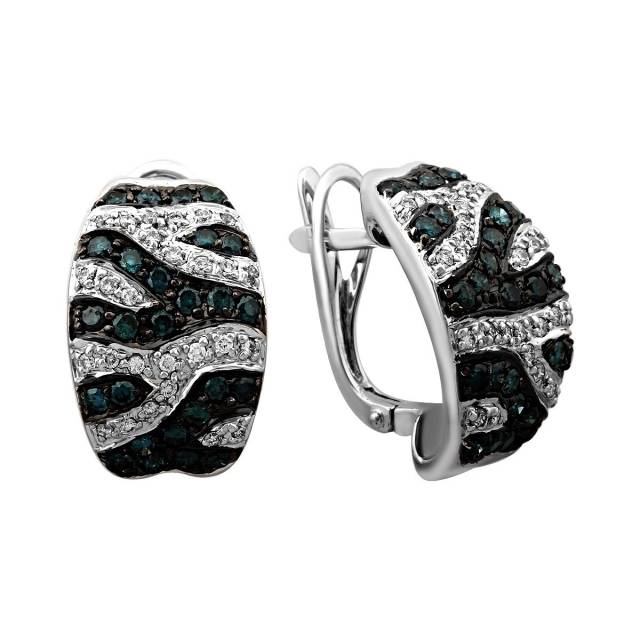 Серьги из белого золота с бриллиантами и голубыми бриллиантами (020495)