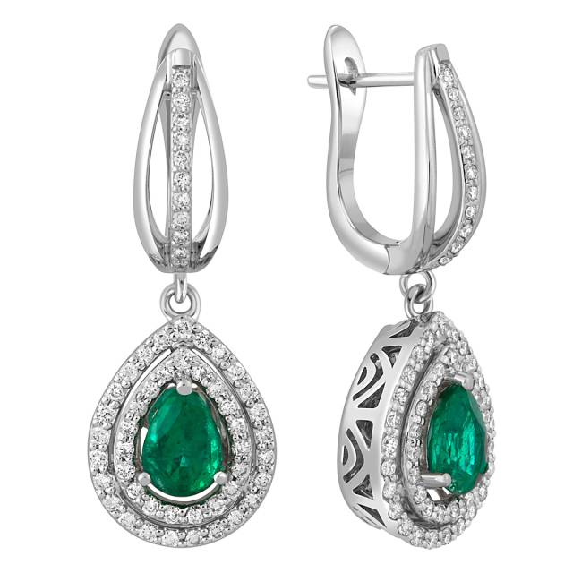 Серьги из белого золота с бриллиантами и изумрудами (047641)