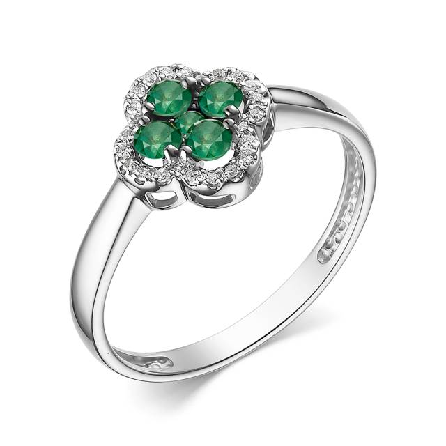 Кольцо из белого золота с бриллиантами и изумрудами (055226)