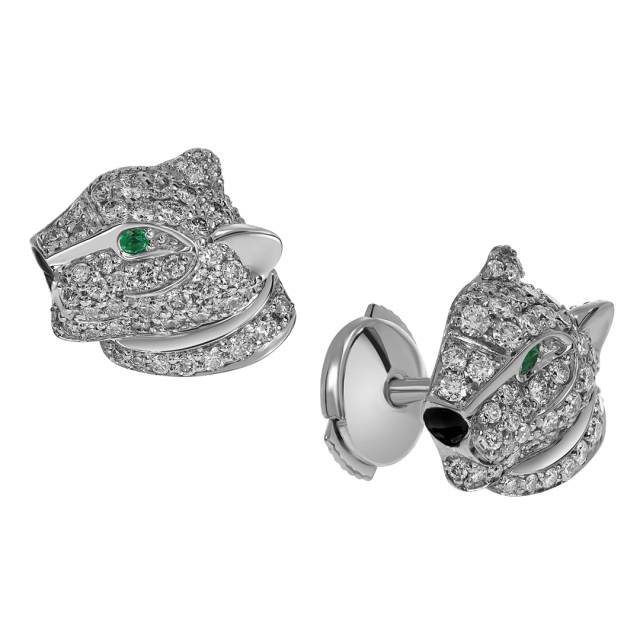 Серьги пусеты из белого золота с бриллиантами и изумрудами (060528)