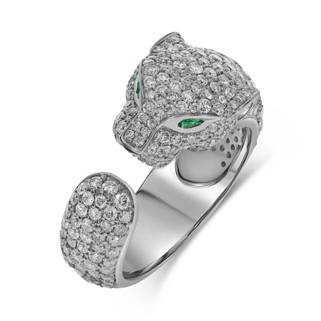 Кольцо из белого золота с бриллиантами и изумрудами (060526)