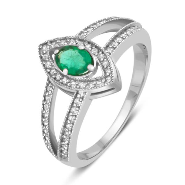 Кольцо из белого золота с бриллиантами и изумрудом (028299)