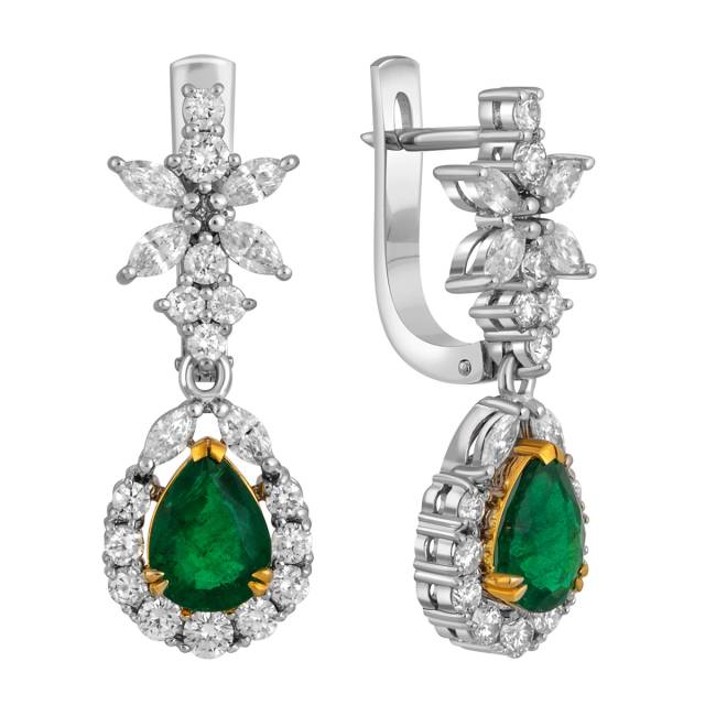 Серьги из белого золота с бриллиантами и изумрудами (040896)