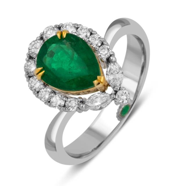 Кольцо из белого золота с бриллиантами и изумрудом (040895)
