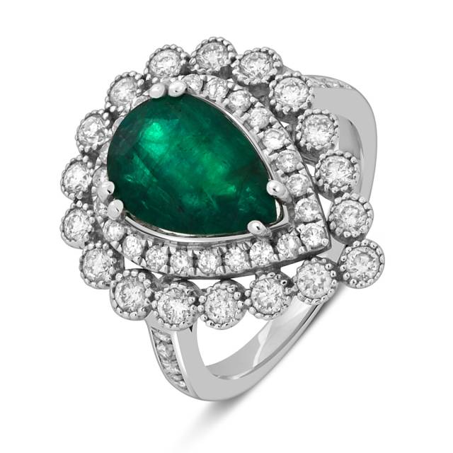 Кольцо из белого золота с бриллиантами и изумрудом (055076)