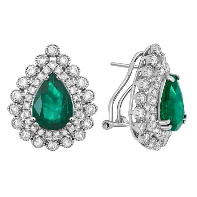 Серьги из белого золота с бриллиантами и изумрудами (047592)