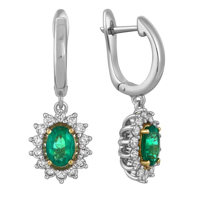Кольцо из белого золота с бриллиантами и изумрудом (051334)