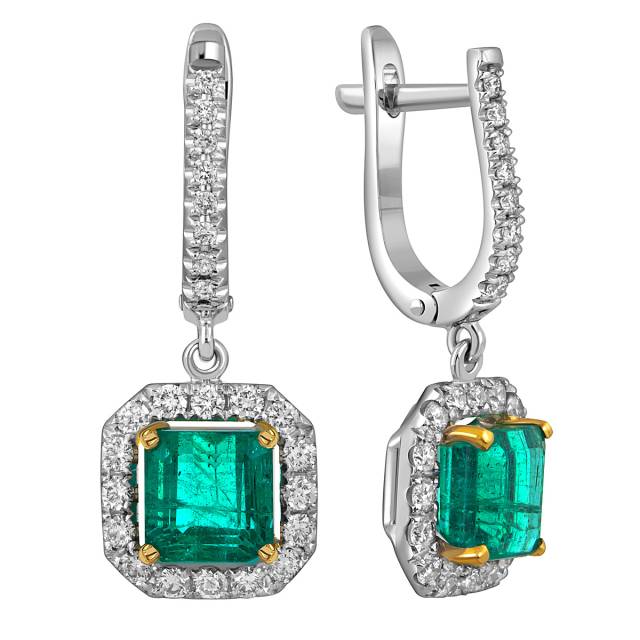 Серьги из белого золота с бриллиантами и изумрудами (053527)