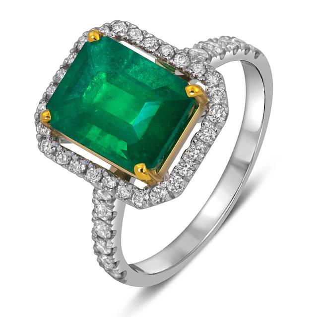 Кольцо из белого золота с бриллиантами и изумрудом (053526)
