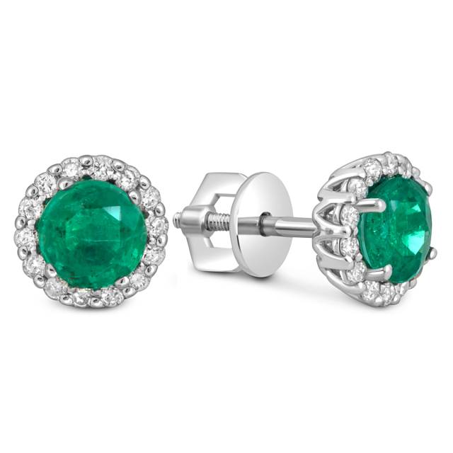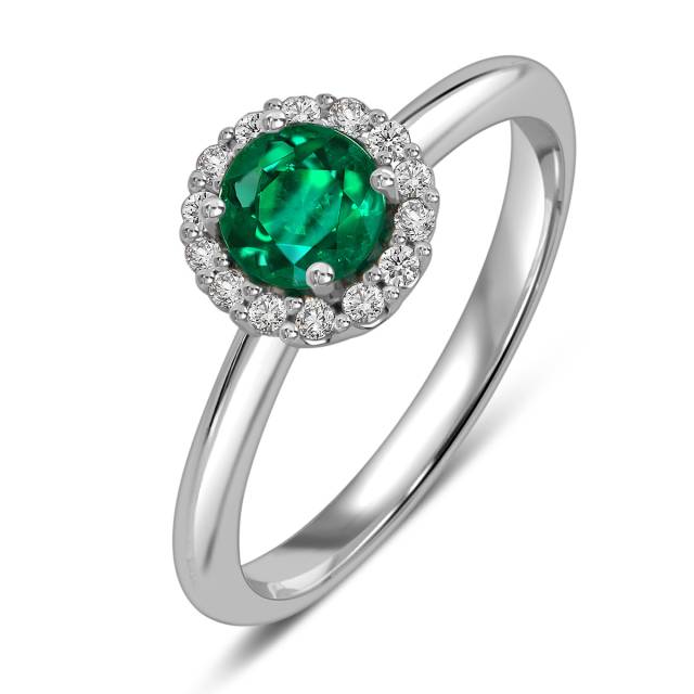 Кольцо из белого золота с бриллиантами и изумрудом (055055)