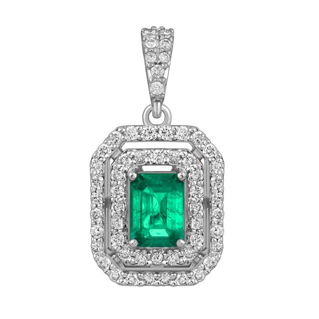 Кулон из белого золота с бриллиантами и изумрудом (055124)