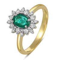 Кольцо мужское из жёлтого золота с бриллиантами и изумрудом (051142)