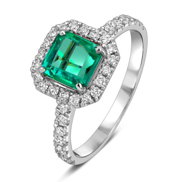 Кольцо из белого золота с бриллиантами и изумрудом (059379)