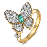Кольцо из белого золота с бриллиантами и изумрудом "Бабочка" (055614)