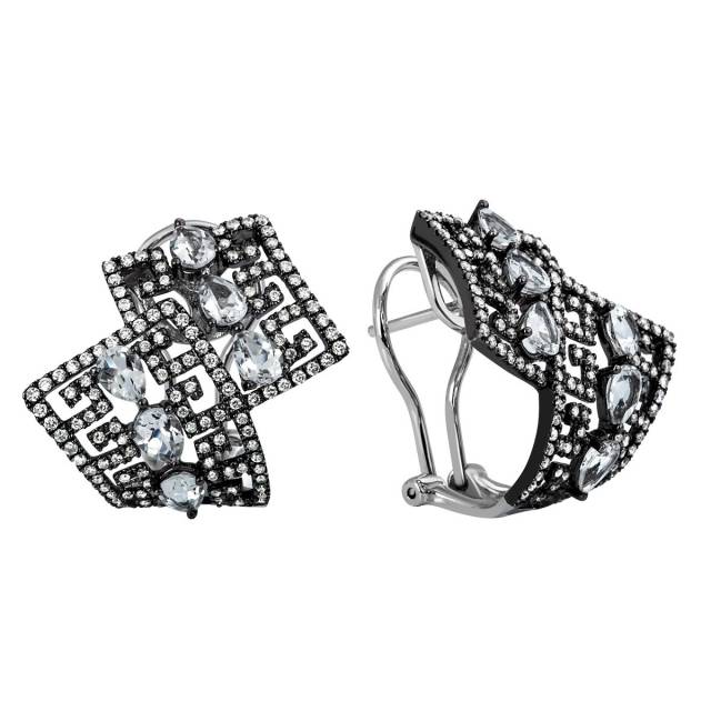Серьги из белого золота с бриллиантами и кварцем (012462)