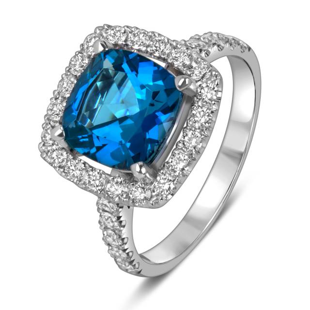 Кольцо из белого золота с бриллиантами и лондон топазом (060358)