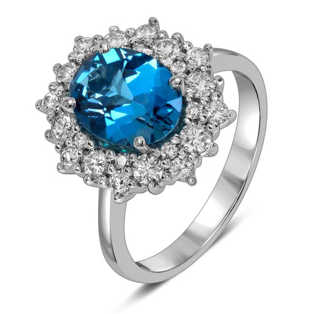 Кольцо из белого золота с бриллиантами и лондон топазом (060507)