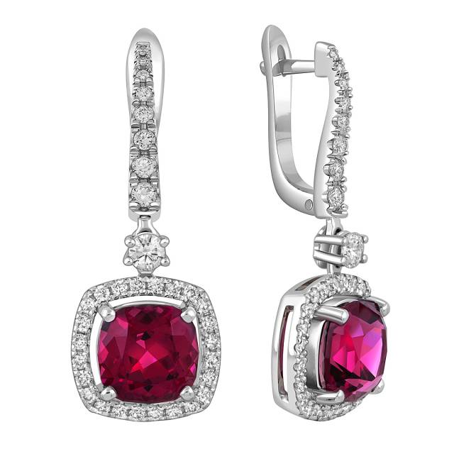 Серьги из белого золота с бриллиантами и родолитами (051717)