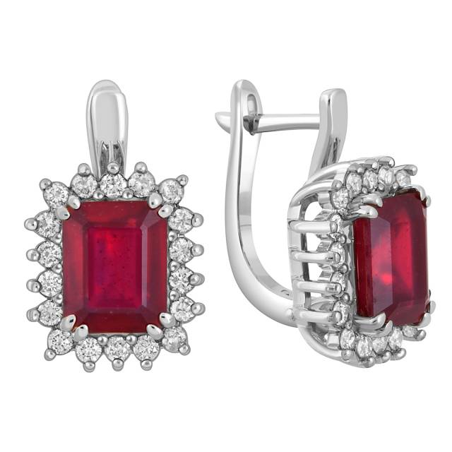 Серьги из белого золота с бриллиантами и рубинами (046924)