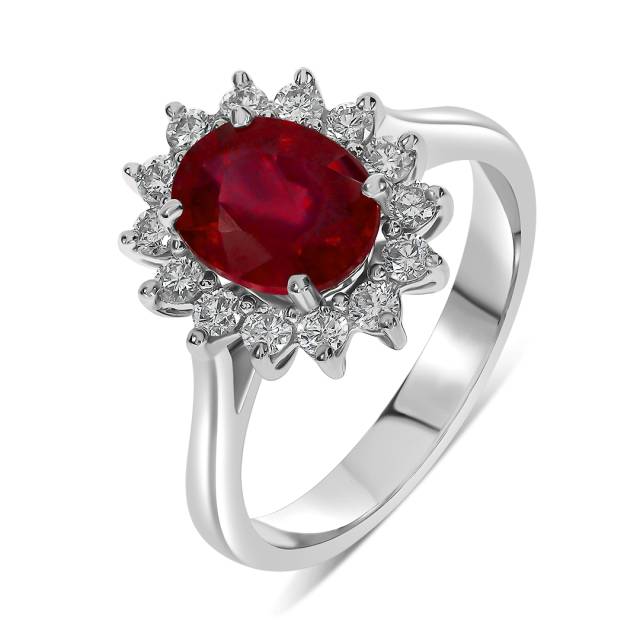 Кольцо из белого золота с бриллиантами и рубином (055611)