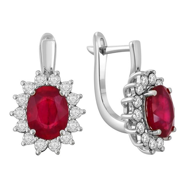 Серьги из белого золота с бриллиантами и рубинами (046928)