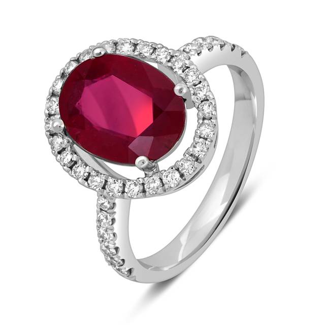 Кольцо из белого золота с бриллиантами и рубином (049386)