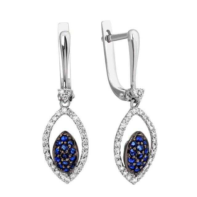Серьги из белого золота с бриллиантами и сапфирами (001278)