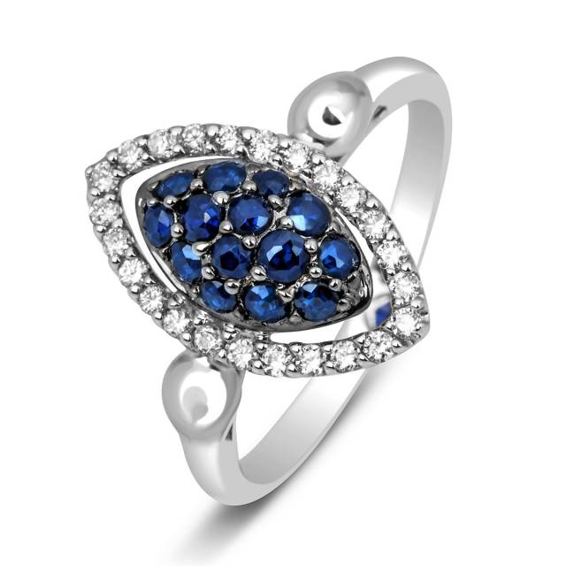 Кольцо из белого золота с бриллиантами и сапфирами (028355)