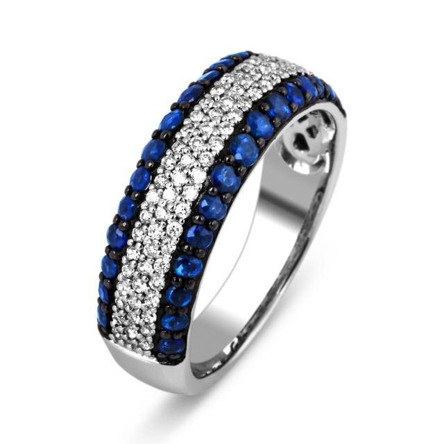 Кольцо из белого золота с бриллиантами и сапфирами (012422)