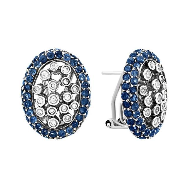 Кольцо из белого золота с бриллиантами и сапфирами (022206)